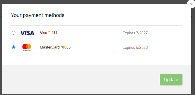 Choose the new payment method and click Update.